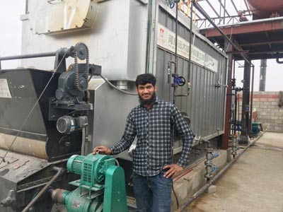 Yuanda boiler 4 ton DZL series biomass fired chain grate traveling grate boiler for rice mill plant in Bangladesh, burning rice husk and firewood.