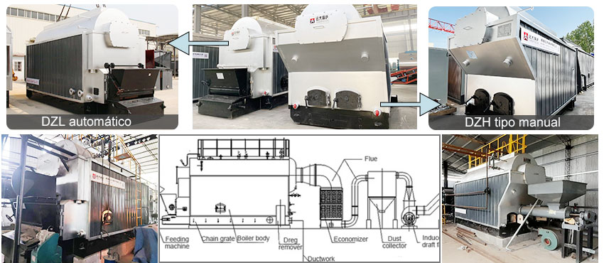 | DZL / DZH | Combined | Single drum with fixed grate | Saturated steam | 1 - 8. | 65 - 600 | ≤ 2.5 | Coal / Biomass |