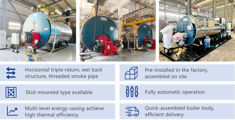 The boiler is delivered as a complete package, requiring water, fuel, and electrical connections for quick installation—no complex installation. Each boiler undergoes thorough factory testing and commissioning to ensure reliable performance.