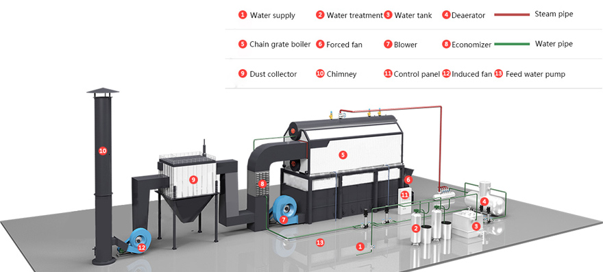 Modular Design - Boiler body, feeding system, and dust removal system are pre-assembled at the factory, reducing on-site work and shortening the installation cycle.