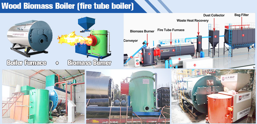 WNS series biomass burner boiler is a horizontal three pass fire tube boiler, also know as combined biomass boiler. The fuel is burned in the front burner, suitable for wood chips, wood pellet, wood sawdust. And it can change to gas or oil burner once you do not want use biomass as fuel.