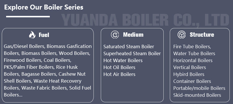 Yuanda has DZL/DZH water-fire tube wood boiler and SZL/SZW water tube wood biomass boiler. Can produce saturated steam, superheated steam and hot water for factory production.