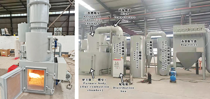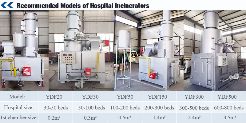 YDF double chambered incinerator for hospital and medical waste disposal. It is approved by CE ISO certification, smokeless and odorless. Especially suitable for incineration of hospital waste, infectious waste, sharps, sanitary napkins, medical waste, biological waste, plastic waste, public waste, industrial waste, etc.