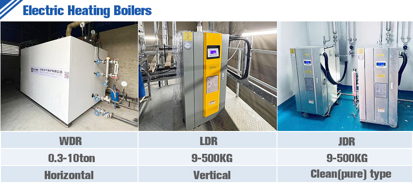 We offer LDR electric steam generator, LDR-SS clean/pure steam generator, and WDR horizontal electric boiler. Can produce saturated steam or hot water for factory production.